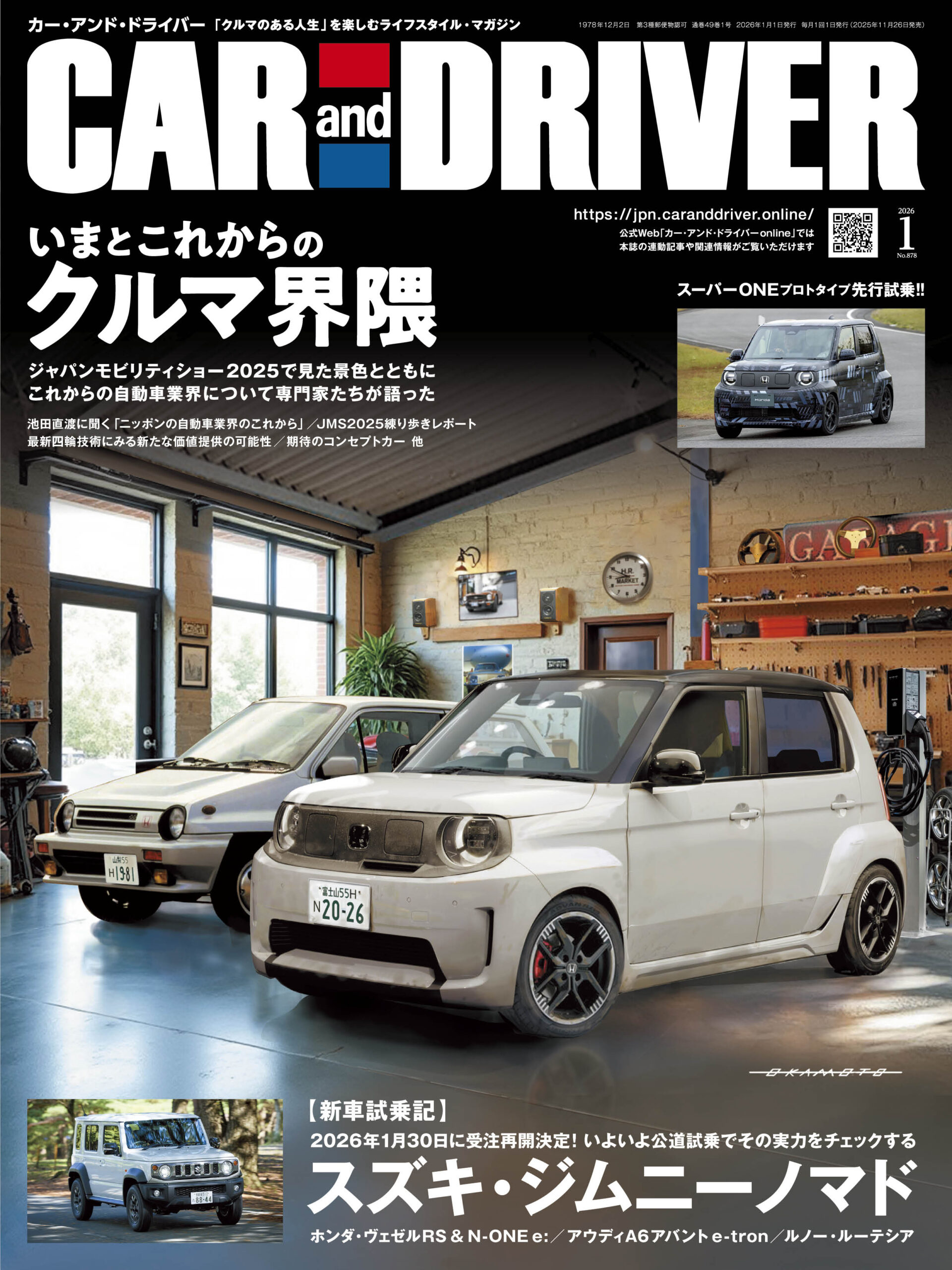 話題のホンダ・スーパーONEプロトに先行試乗!最新四輪技術にみる新たな価値提供のカタチとは!?巻頭特集では「いまとこれからのクルマ界隈」について専門家たちとともに考察した。新車試乗記では今年初めに大きな話題をさらったスズキ・ジムニーノマドの公道試乗で実力をチェックするなど今号も盛りだくさん!