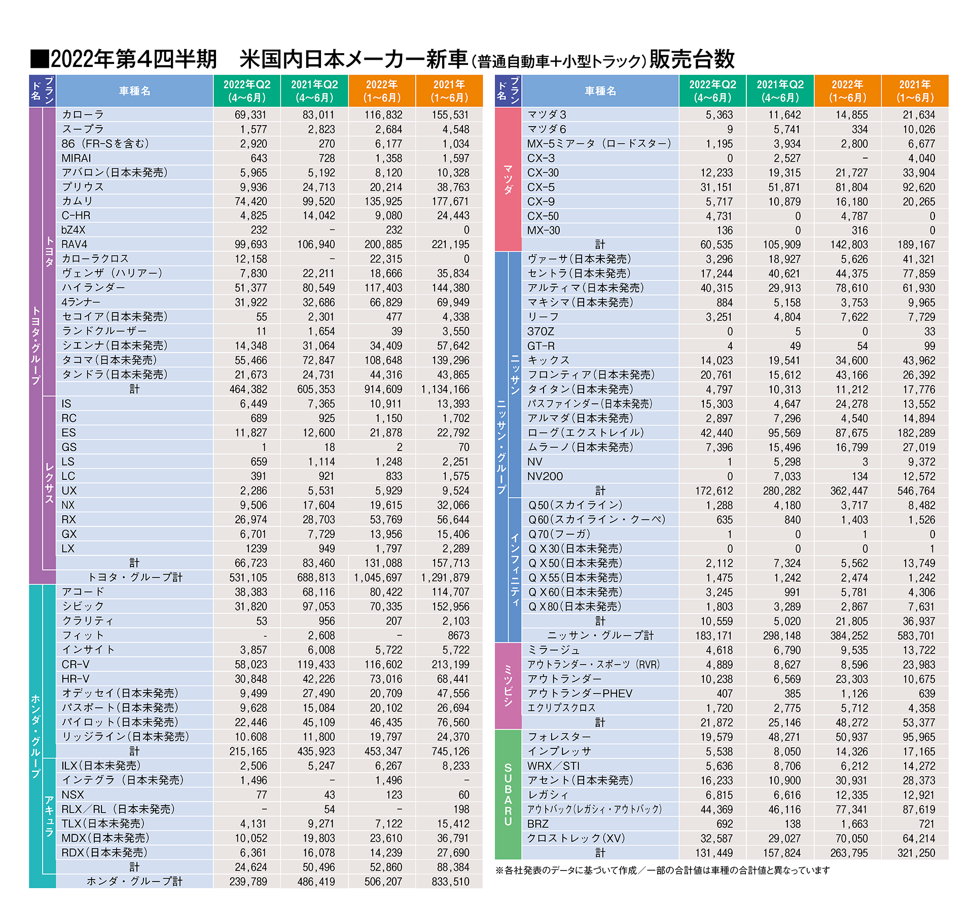 米国で販売している日本メーカーが、第2四半期の販売実績を発表した。部品調達が滞っている状況は国内市場と同じで、供給が順調にいっていない。マーケットの減速には抗しきれず、各社前年同期比ダウンになっている。