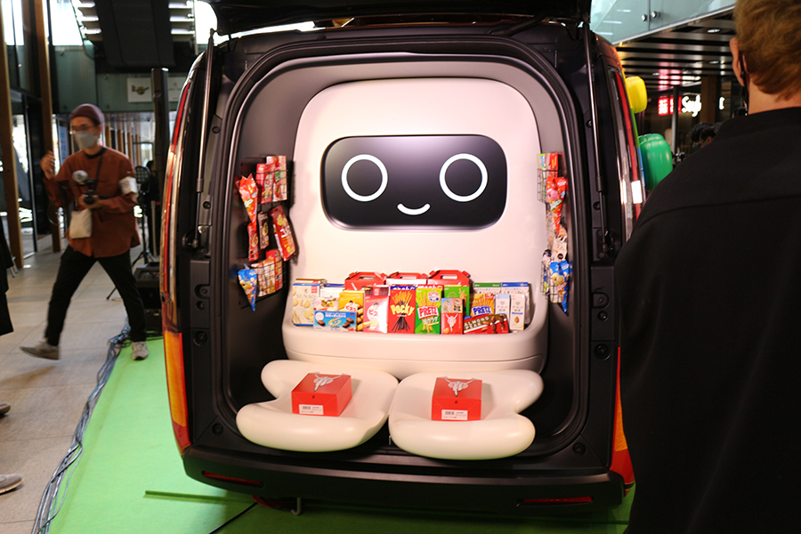 グリコワゴンはバックドアを開けると、優しい表情のモニターが子供たちを出迎え、お菓子を配ってくれる。モニターの表情は変化し、子供たちとコミュニケーションを取ってくれる。ホンダが開催する「第20回子どもアイディアコンテスト」(2022年)においては、マスク生活の苦しい思いがにじむ「気持ちを伝え合いたい」というアイデアが複数提案されていた。2代目グリコワゴンのモニターは、子供達が潜在的に抱える願いにうまく対応したものだ。