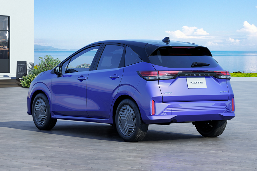 ノートは2023年12月にマイナーチェンジを実施。フロント回りを一新したほか、新色スミレ(CM出演車のカラーリング)の設定や日本の伝統的な幾何学模様をアレンジした16インチホイールカバーの設定などを行っている。