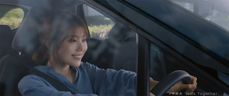 1月25日に開催された新CM発表会には、CMでも使われている平井大さんの楽曲『Walk Together』流れる中、ステージ中央まで有村さん本人が運転して登場。有村さんの足下はフラットソールのパンプス。運転に適したシューズを選択している点にクルマのCMに出演する責任感と誠実な心配りが感じられた。