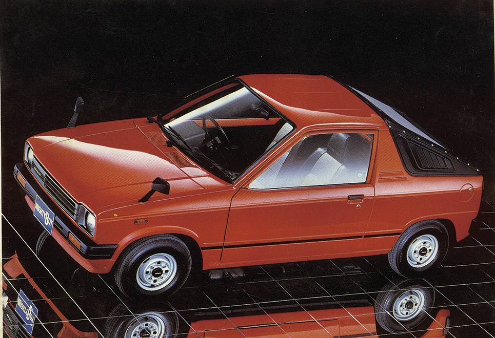 マイティボーイのベースになっているのは、セルボである。ほぼ共通なのがセンターピラーまでで、後ろをスパッと切り落としてピックアップ化している。うまくバランスをとったプロポーションだし、とにかくボクの目には素敵なクルマに映る。荷台回りのデザイン処理は実に巧みなものだ。軽自動車の場合、クルマの性格や用途をハッキリさせ、スタイリングにしろ機能にしろ、目的に合わせてスッパリ割り切ってしまうほうがいい。アルトが成功したのは、そのいい例だ。アルトは経済性と合理性を真正面から追求してデビューした。「軽自動車のメリットは何か」に徹底して迫った点が、アルトの勝因になった。