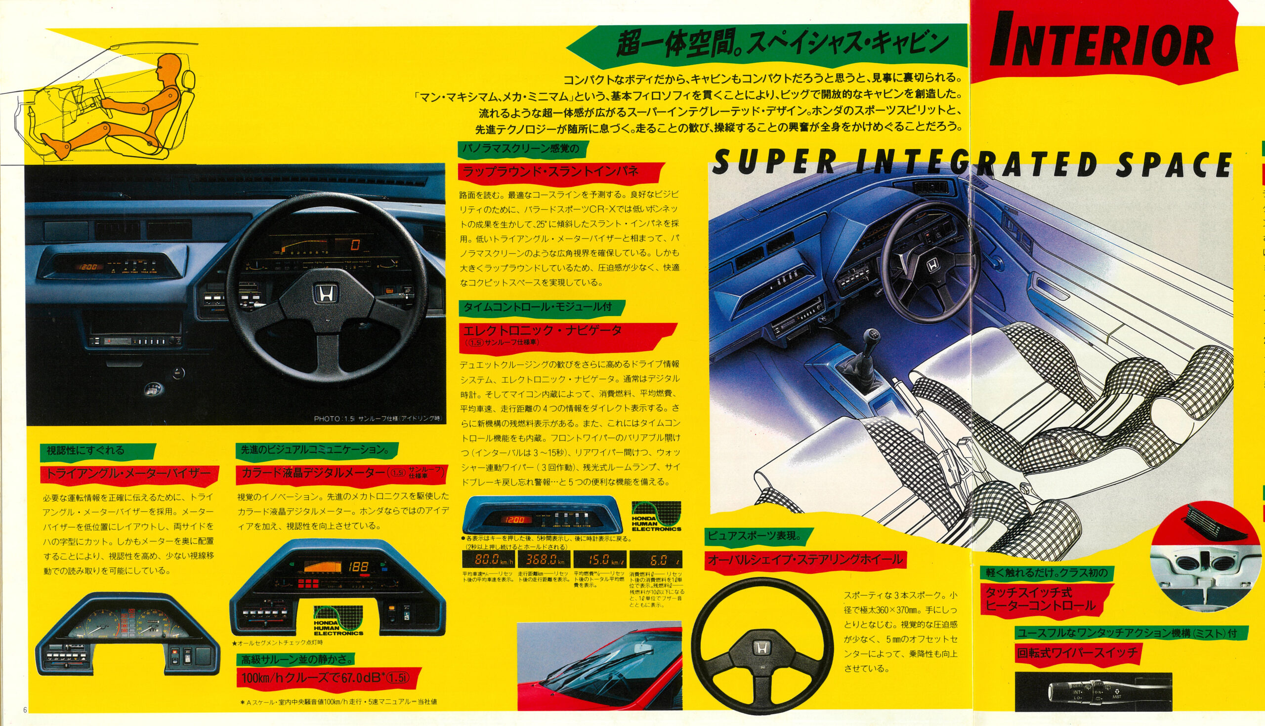 コクピットに入ってみる。こちらも斬新なレイアウトだった。ドライビングポジションは素晴らしく、前席スペースは余裕十分。ただし後席は完全に補助席である。定員は4名だが、小さな子供でも座らせるのがかわいそうなスペースしかない。ホンダもその点は100%認めていて、カタログには「ワンマイルシート」と表記している。CR-Xは、「オレとあいつが乗れて、カッコいい。それで十分じゃないか」と割り切れる、爽やかなユーザーに向けたクルマである。