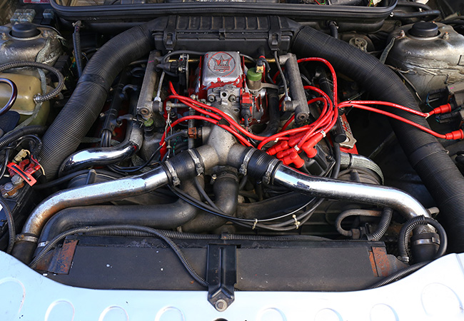 このうち④デ・トマソ時代の主力車種が、今回紹介する222SRを含むビトルボ・シリーズである。1981年に発売されたビトルボ(イタリア語でツインターボを意味する)は、その名称どおりV6ツインターボユニットと、トランスアクスル方式のFRレイアウトを組み合わせたスポーツモデル。世界中で人気を集めたヒット作である。ボディは2ドアクーペを基本に、ホイールベースを伸ばした4ドアセダン、ホイールベースを縮めたスパイダーの3タイプがあった。
