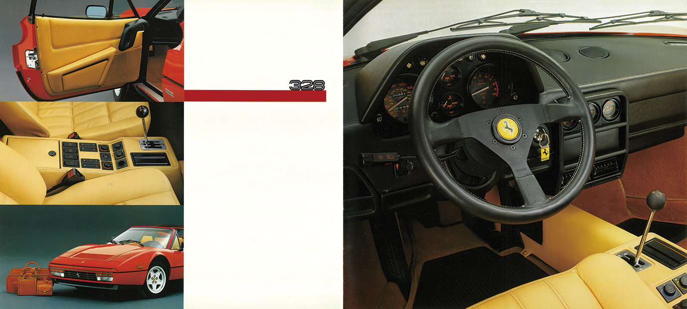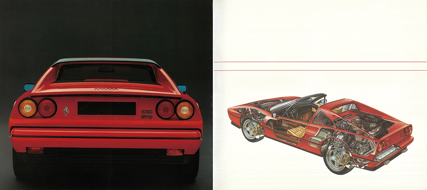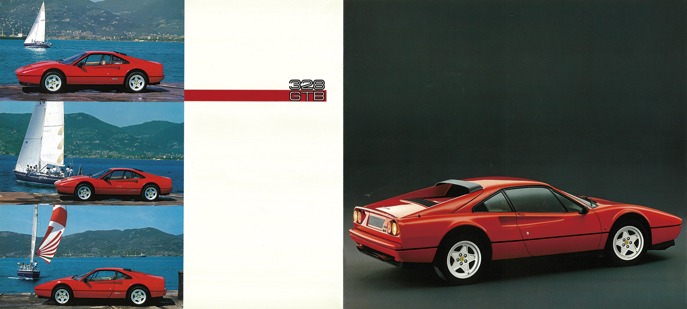 現在の「296シリーズ」のルーツであるフェラーリ328GTB & GTSの復刻版カタログ。カタログは1985年版(原寸270×302mm、変形36㌻編集)。フェラーリ328シリーズは、1975年に登場したV8・MRモデル「308シリーズ」の最終発展版。1985年のフランクフルト・ショーでデビュー、1989年まで生産された。 「328」はエンジン排気量の3.2リッターと、8気筒エンジン搭載車であることを示している。デザインは、ピニンファリーナのレオナルド・フィオラヴァンテが担当。クーペボディのGTBと、デタッチャブルトップのGTSが選べた。パワートレーンは3185ccの90度V型8気筒DOHC(270ps/31.0kgm)と5速MTの組み合わせ。ホイールは16inを装着する。328シリーズは、GT的なキャラクターが濃厚だった512TRに対し、ハンドリング性能に優れるのが特徴。パフォーマンスは0→100km/h加速が6.4秒、0→400m加速14.3秒と、現在の水準では平均レベルだが、「振り回せるフェラーリ」としていまでも高い評価を獲得している。ボディサイズは4255×1730×1128mm、車重はGTBが1263kg、GTSは1273kgだった。