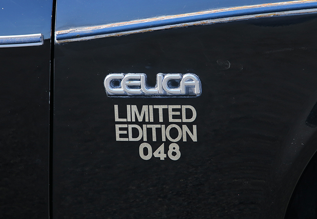 初代セリカは、国内をはじめ、海外市場でも大好評を博しベストセラーカーに成長する。1977年3月には生産累計100万台を突破。同年6月、国内登録累計38万5000台を達成した。その記念として誕生したのが限定車の「ブラックセリカ」だった。ブラックセリカはトップバージョンのリフトバックの2000GTをベースに、ボディカラーを専用色のブラックで仕上げ、内装は明るいアイボリーで統一。輸出仕様のシート地と、大型衝撃吸収式バンパー、電動フェンダーミラーを特別装備していた。販売台数は385台限定。ボディサイドに製造シリアルナンバーが入り、コンソール部にはオーナーのネーム入りプレートを装着された。