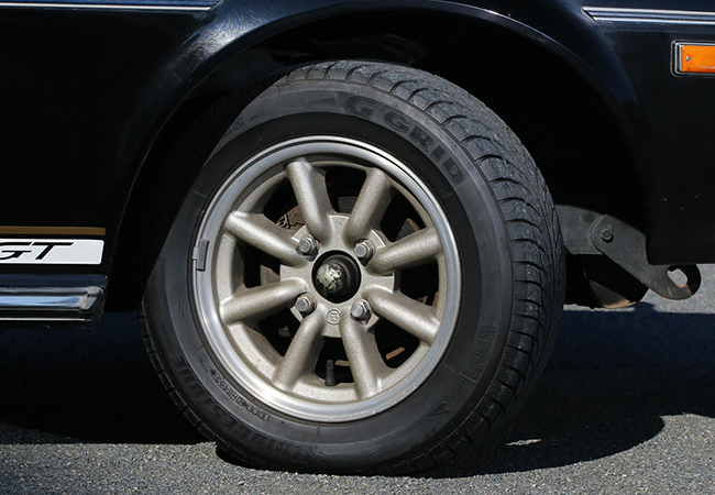 ホイール&タイヤ/取材車は社外品のスポークアルミと195/60R14タイヤ装着。標準仕様は185/70R13サイズとアルミの組み合わせ