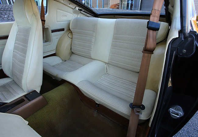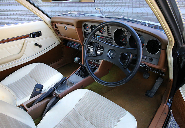 キャビン/ブラックセリカの室内はシートとドアトリム類がアイボリー、インパネはブラウンカラー。ステアリングは4本スポークの本革巻き(パワーアシスト未設定)。エレガントな印象