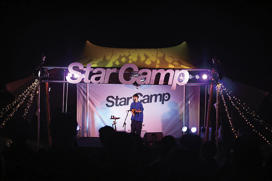 ほかにもスポーツクライミングや丸太切り体験などのワークショップ、夜にはキャンプファイヤーやライブなど、小さい子供やファミリーで参加できる企画が多数開催された。