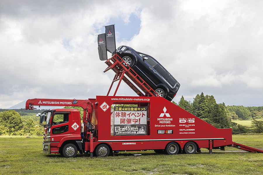 今回のハイライトといえる新型デリカミニは現行モデルのオーナーはもちろん、大型SUVのセカンドカーとして購入を検討しているユーザーも多く、内装などをデモカーに乗り込んでチェックしていた。最大傾斜45度の急坂登坂が体験できる4WD登坂キット同乗体験や各4WDモデルを林間コースで試乗できる体験走行など、自慢の走行性能をアピールするプログラムも例年人気だ。