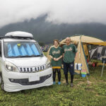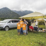 区画がないフリーサイトはキャンピングカーや大型のテントがあっても十分な広さを確保できるため、参加者は思い思いの場所に愛車をレイアウトしていた。