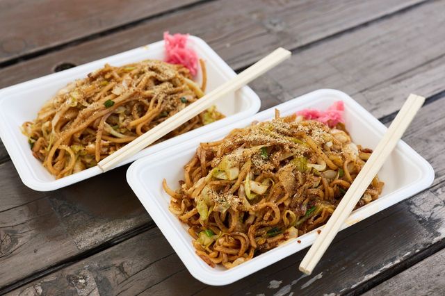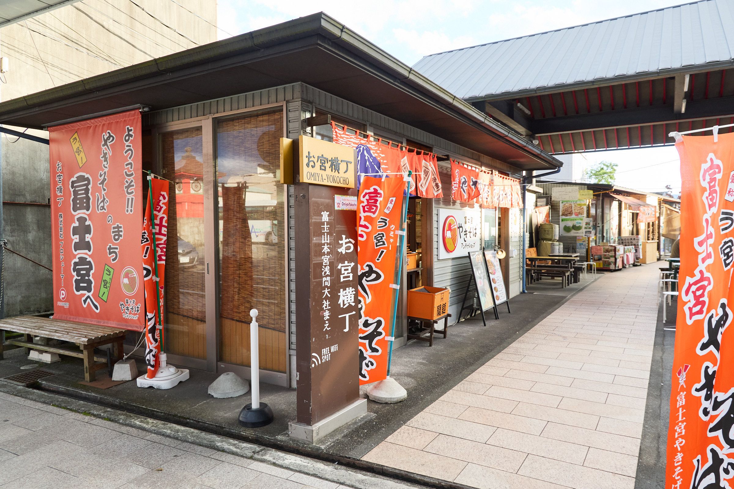浅間大社の二の鳥居の南側には、富士宮やきそばやジェラートなど、富士宮の名産が楽しめる「お宮横丁」が。B級ご当地グルメ「富士宮やきそば」の発祥の地で、焼きそば以外にもお団子、饅頭、ジェラートなどのスイーツも楽しめる。富士山からの湧水を飲めるサービスも。