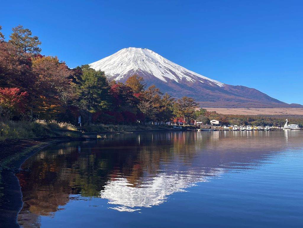 また、山中湖の湖畔をゆっくり楽しむスポットとして、旭日丘湖畔緑地公園がおすすめ。春には桜、夏には紫陽花、秋には紅葉と四季折々の花や景色を楽しめます。山中湖越しの富士山は近くに大きく見え、他の湖とはまた違った趣が楽しめるでしょう。