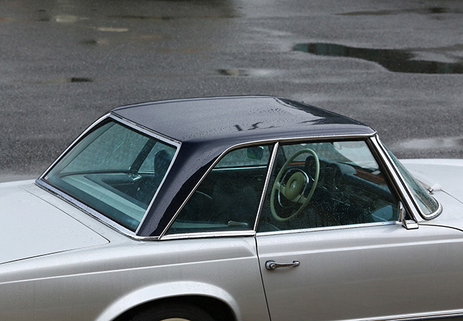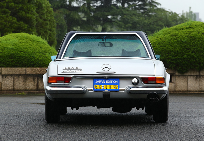 ハードトップ/脱着可能なハードトップはW113型の大きな個性。中央が凹んだ独特の形状は、仏塔を意味する「パゴダルーフ」と呼ばれた
