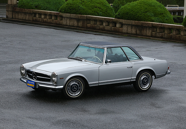 1971年式メルセデス・ベンツ280SL。「たて目のSL」の愛称を持つW113型は1963年春のジュネーブ・ショーでデビュー。多くのファンが「歴代メルセデスで最も美しい」と評価するエレガントなスタイリングが魅力