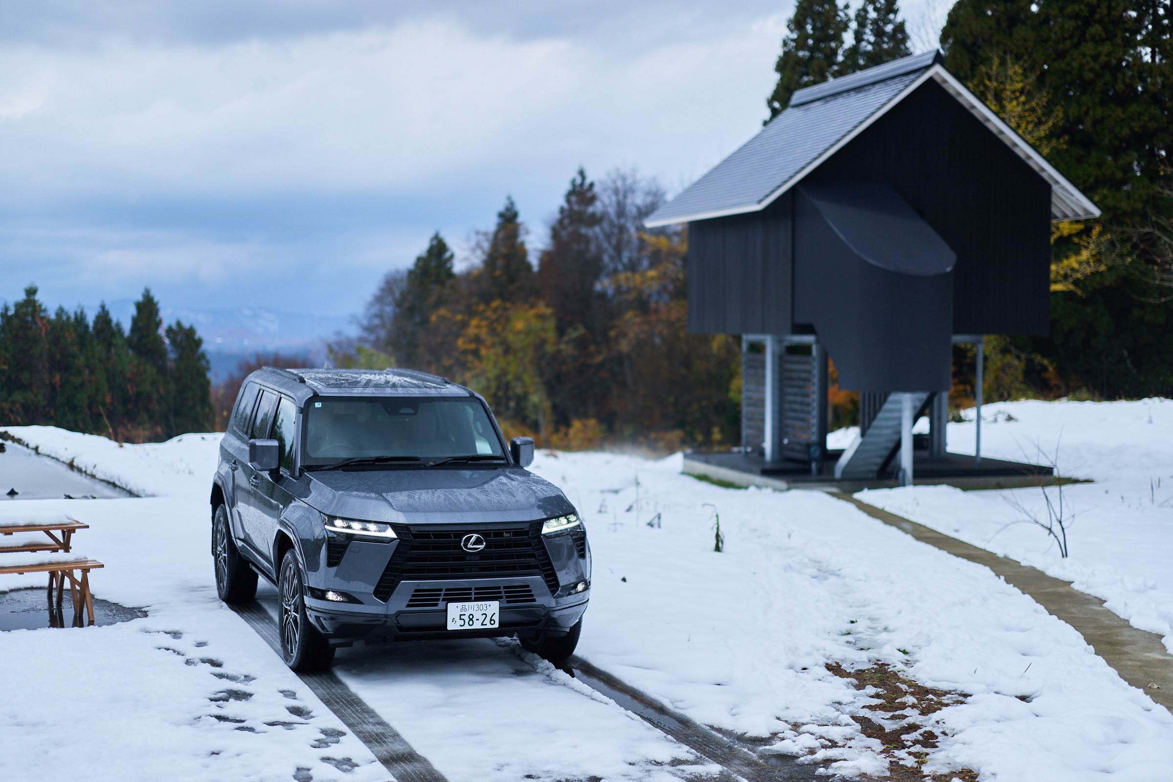 雪の見え始めた魚沼エリア、今回のパートナーはレクサスGX。サイズを感じさせない瞬発力とダイレクトなハンドリング、10速ATの滑らかな加速も特筆もの。高速道路からワインディング、悪路までをこなすオールマイティで頼もしい旅の相棒
