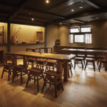 宿のレストランスペースは、大きな窓に面しており、美しい里山の自然を感じながらの食事が楽しめる。冬の雪景色だけでなく、夏の新緑も目を楽しませてくれるだろう。都会の生活に疲れた旅人の心を癒し、お腹を満たす宿である。