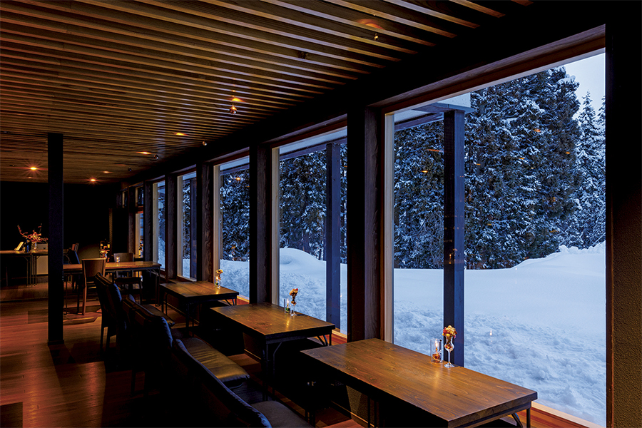 最初に紹介したいのが、2026年1月よりオーベルジュ(宿泊設備付きレストラン)にリニューアルした“醸す森”だ。ここは越後湯沢から国道353号線を北上した十日町の山中にある全9室のこぢんまりとした宿。昨年まで在籍した系列の“酒の宿 玉城屋”でミシュラン1つ星評価を得た栗山昭シェフは、地のジビエや野菜を積極的に用いる。フレンチの冴えわたる技と雪国の大地の恵みが融合する料理は、わざわざ遠出する価値ある優食である。
