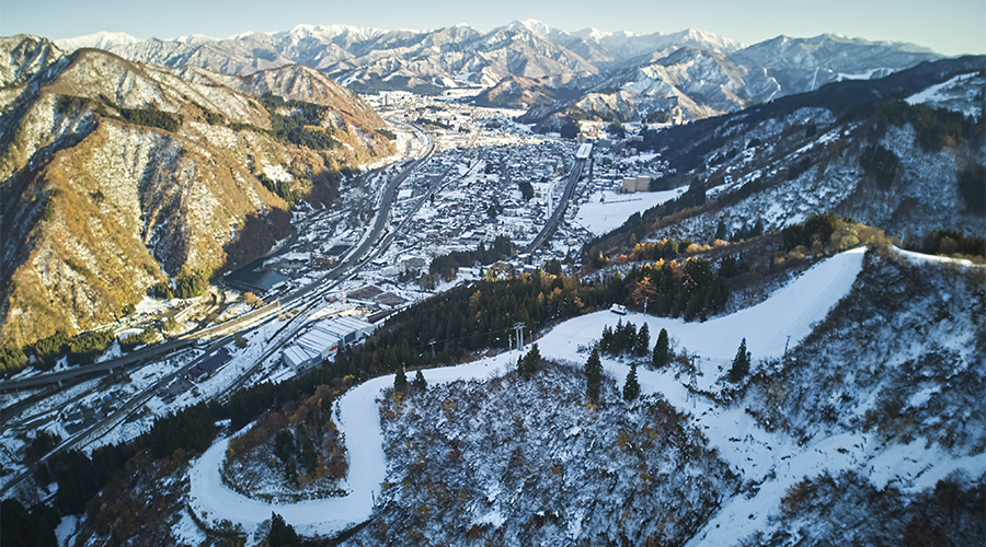 その関越トンネルを抜けた先にある雪国、越後湯沢・魚沼エリアは日本屈指のスキー場銀座でもある。中でもトップクラスの知名度を誇るのが“GALA湯沢”だ。バブル末期の1990年に開業した、新幹線駅直結のスキー場だ。驚くのは、山頂に展開するスキー・エリアがわずか7カ月でつくられたこと。現地でスキー場の雄大さを見れば、その偉業さが実感できる。日本の土木事業の底力に触れる旅となるだろう。