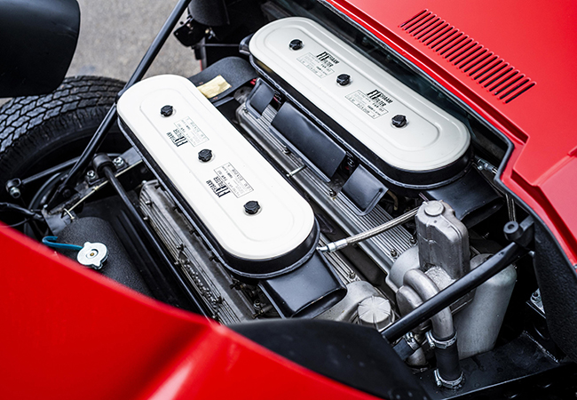 スタンツァーニの思考はシンプルだった。ミウラのダイナミクスにおける欠点はズバリ、そのユニークな横置きレイアウトにあった。ミッドエンジンは縦置きに限る。けれども長い12発をリアミッドに縦置きすると巨大なミッションが車体後方へ突き出てしまい、ロードカーとしては許されないパッケージになってしまう。ル・マンカーにナンバーをつけたと思えば容易に想像がつくだろう。