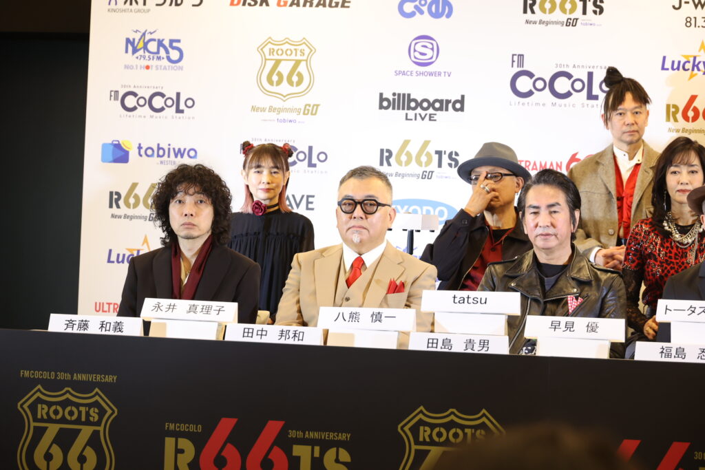 斉藤和義からは「僕も最初の40歳になる時から参加させてもらっていて、その時に『60になってまたやれたらいいね』なんて話をしたのを覚えていて。その40歳の時に、中年になったなということで、打ち上げもすごい楽しくて。それまでライバルみたいにギスギスしてたのが、急にそこで打ち解けて、みんな仲良くなったりして」とROOTS66の歴史を感じさせる発言もあった。