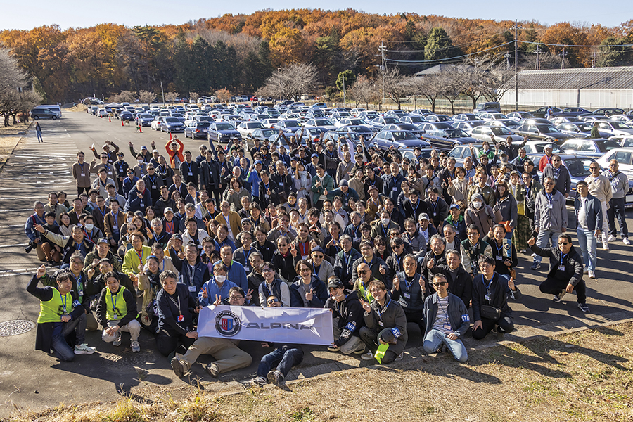 2025年11月29日、会場の道の駅うつのみや ろまんちっく村(栃木県)には約140台のアルピナが集まった。最初期の歴史的モデルから最新モデルまで、多種多様なアルピナがほぼ年代別に並ぶ光景は壮観。国内で走っているのはわずか数台という貴重なモデルも多く、参加者たちのテンションも高かった。
