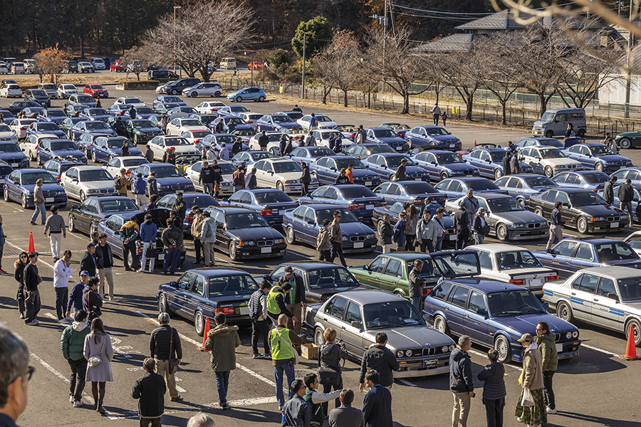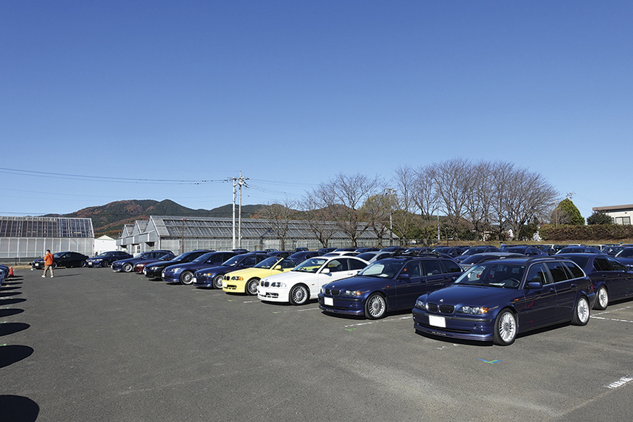 2025年11月29日、会場の道の駅うつのみや ろまんちっく村(栃木県)には約140台のアルピナが集まった。最初期の歴史的モデルから最新モデルまで、多種多様なアルピナがほぼ年代別に並ぶ光景は壮観。国内で走っているのはわずか数台という貴重なモデルも多く、参加者たちのテンションも高かった。