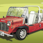 ミニ・モークは、もともとミニをベースに軍用車として設計されましたが採用されず、一般車両として発売されました。資料によれば、イギリス、オーストラリア、ポルトガルなど複数の国で製造され、ポルトガル工場はイタリアのオートバイメーカー、カジバに買収され、製造が続けられました。