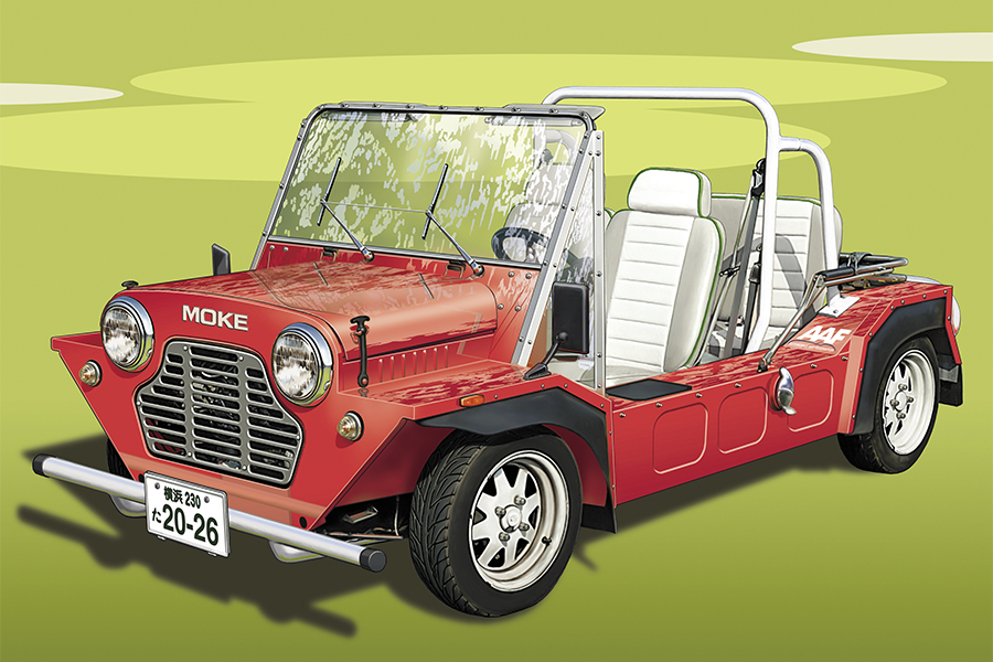 オーストラリアではゴルフ場やビーチバギーで利用された“平和なクルマ”と聞いていましたので、イラストの構図はゴルフ場に設定し、芝生のグリーンの背景に映える赤のボディカラーを意識しました。好きなクルマは筆がのって、楽しく描けました。