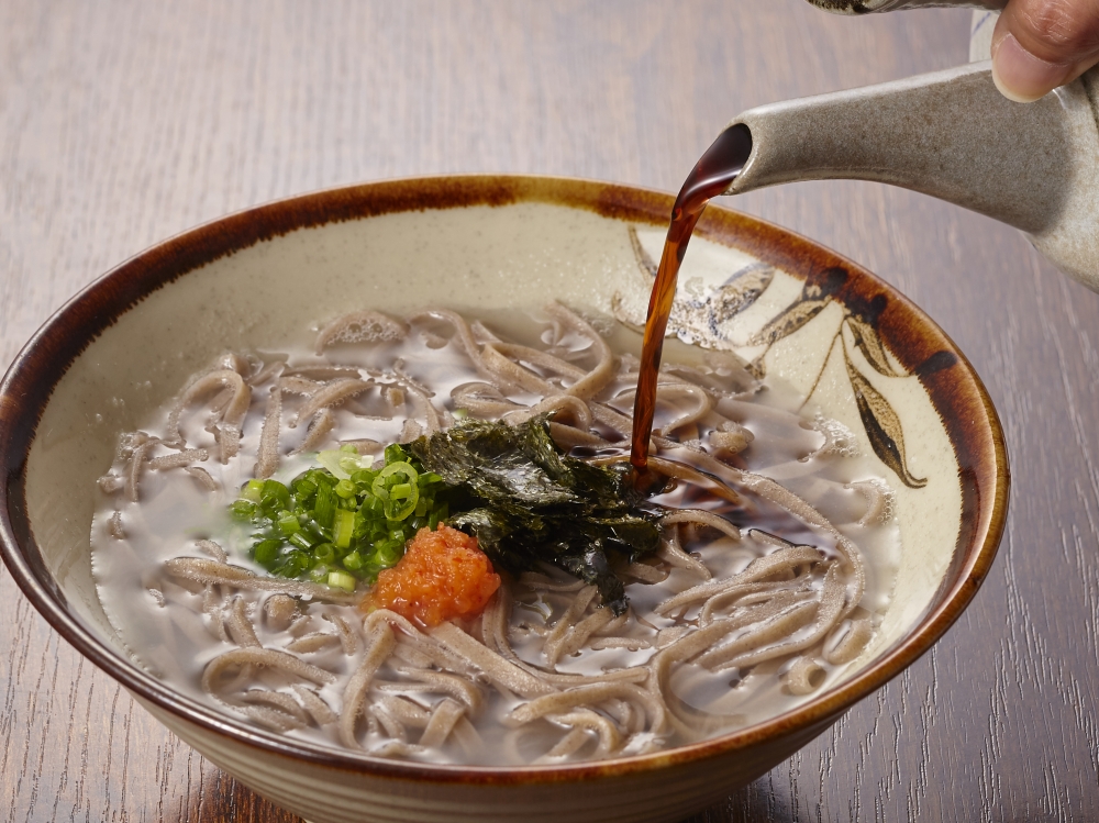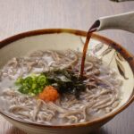 そして、もうひとつ見逃してはいけないのが「出雲そば」である。殻付きの玄そばを使うため、色が黒く香りが高い。丸い重ねた器を使う「割子そば」と「釜揚げそば」の2種類がある。どちらも、そばに直接、ツユをかける。コシの強さも特徴的だ。