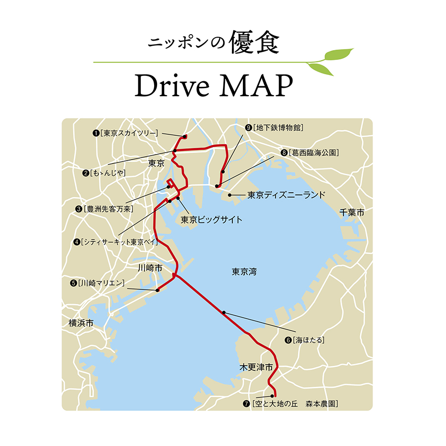 大都市、東京をあえてドライブしてみよう。街中の混雑を避け、臨海エリアを中心に長めの良い海沿いをめぐるコースだ。下町イメージ豊かな両国エリアを味わったあと、首都高速道路、東京アクアラインを使うと自然豊かで、ショッピングモールも話題の街、木更津まであっという間の小旅行になる。