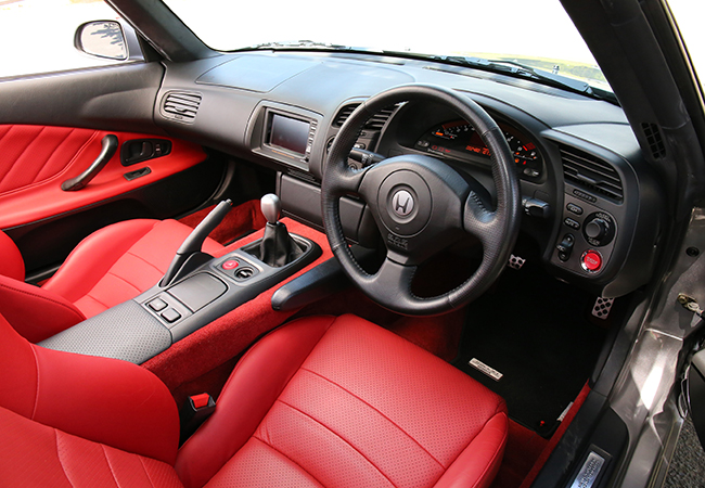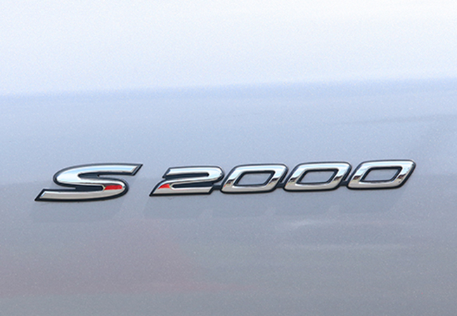 S2000の魅力は、1997㏄の超高回転型エンジン。レブリミットは量産エンジンとして異例の9000rpm。エンジンブロックはFRM(ガラス繊維強化金属)スリーブを採用した高剛性タイプ、ピストンは鍛造。ホンダ独自のVTEC機構とストレートインテークマニホールド、ステンレス製大径デュアルエグゾーストなど、レーシングエンジンに匹敵する贅沢なメカニズムが投入された。スペックは250㎰/8300rpm、22.2㎏・m/7500rpm。トランスミッションはクロースレシオの6速MT(ATは未設定)で、ボディは“ハイXボーンフレーム構造”を採用した高剛性設計。駆動方式はFR。S2000は新世代のホンダのシンボルとして開発された名車だった。