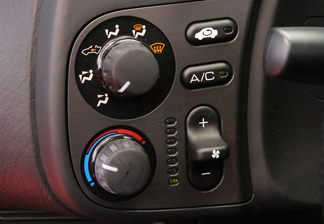 エアコン/エアコンはオープンモード付き。操作部はメーター左側にレイアウト