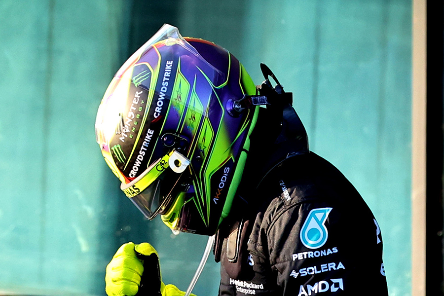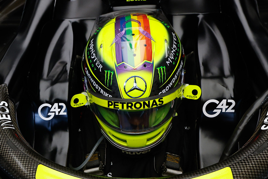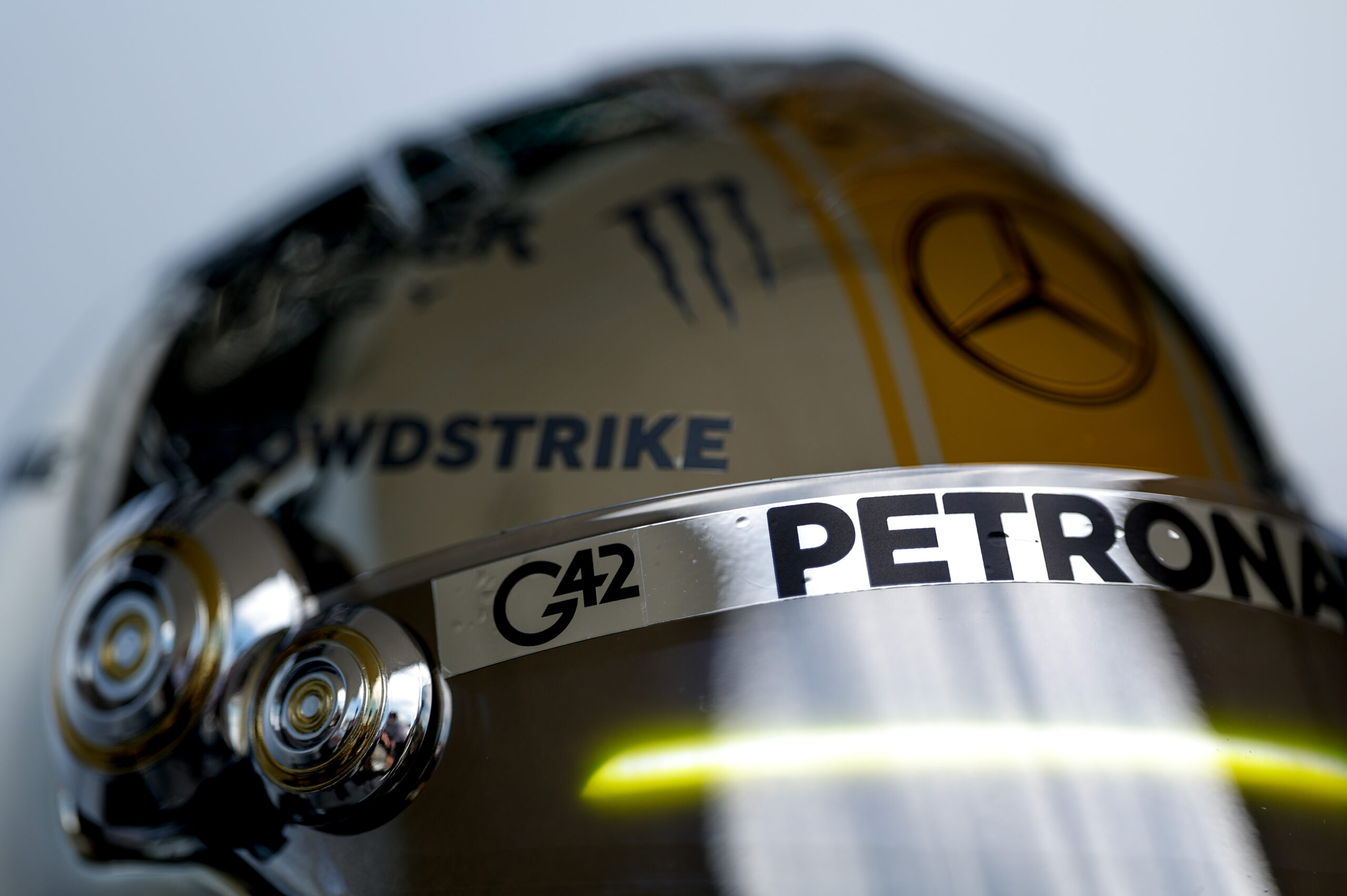 というのも、実はこの日本GPだけヘルメットのベースカラーが異なっていたのである。ハミルトン選手のファンなら、イエローをベースにしたヘルメットが定番だと思っているはずだ。カーナンバーもイエローでコーディネートしている。ところが、日本GPだけはまったく異なるクロームカラーのヘルメットで出場していたのだ。