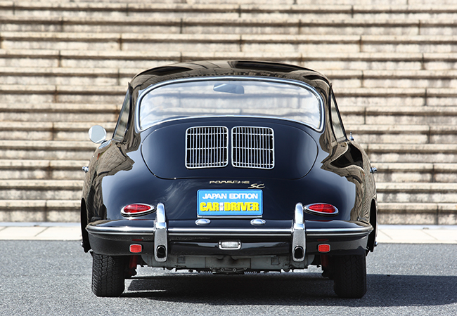 リアスタイル/356Cは356B時代と共通のT-6ボディを採用。Cを見分ける外観上のポイントはホイールPCDの変更に伴い、ホイールキャップ中央の膨らみが亡くなった程度。マフラー出口はリアバンパーのオーバーライダー下部にセットされている