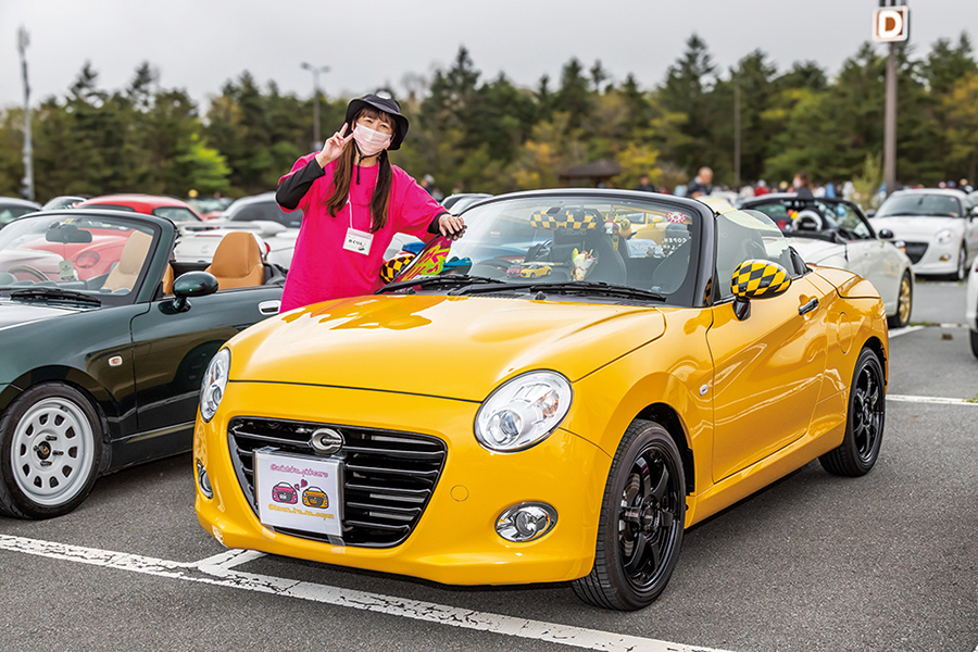 新旧さまざまな個性をまとったコペンに出会えるのがこのミーティングの醍醐味だ。とくに2ndコペンはローブ/エクスプレイ/セロ/GR SPORTのバリエーションがあり、同一車種のミーティングとは思えないほどバラエティ豊かな車両が並ぶ。愛車とファッションのコーディネートを楽しむ参加者も多く、コスプレ姿も目立っていた。
