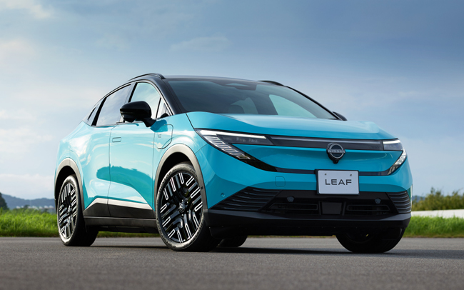 3台目は、本年10月17日より日本での受注を開始し、2026年1月からユーザーへの納車を開始する第3世代の新型リーフ。エクステリアは力強く圧倒的な存在感を放つ新進のクロスオーバーとして再構築し、内包するインテリアはCMF-EVプラットフォームの採用によりフラットなフロアと開放感のある足元空間、そして使い勝手のよいラゲッジルームを実現する。日本仕様の「B7」グレードはパワートレインに新開発のYM52モーター、インバーター、減速機といった主要な3つのコンポーネントを一体化した3-in-1構造に、バッテリーセル内の単位面積あたりのリチウムイオン高密度化とバッテリーモジュールおよびパックの内部構造の最適化を図った総電力量78kWhのリチウムイオンバッテリーを搭載し、一充電走行距離は最大で702kmを成し遂げている。