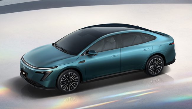 6台目は、東風日産乗用車公司から本年4月27日に中国市場で発売、5月15日にユーザーへの納車を開始した新型EVセダンのN7。エレガントなプロポーションと広々とした室内空間を兼ね備えたファストバックスタイルを採用し、インテリアでは先進技術を活用してファミリー層向けに心地良い環境を提供する。パワートレインに関しては、フロントに最高出力160kW/最大トルク305Nmを発生するモーターと総電力量58kWhのリン酸鉄リチウムイオン電池を搭載した仕様と、最高出力200kW/最大トルク305Nmを発生するモーターと総電力量73kWhのリン酸鉄リチウムイオン電池を搭載した仕様を設定。一充電航続距離は中国CLTCモードで58kWh仕様が510km以上、73kWh仕様が最大635kmを実現する。また、N7の横のひな壇には、ABB FIAフォーミュラE世界選手権シーズン11(2024/25)において、参戦以来初めてオリバー・ローランド選手によってドライバーズチャンピオンを獲得した日産のフォーミュラE GEN3 23号車を展示する