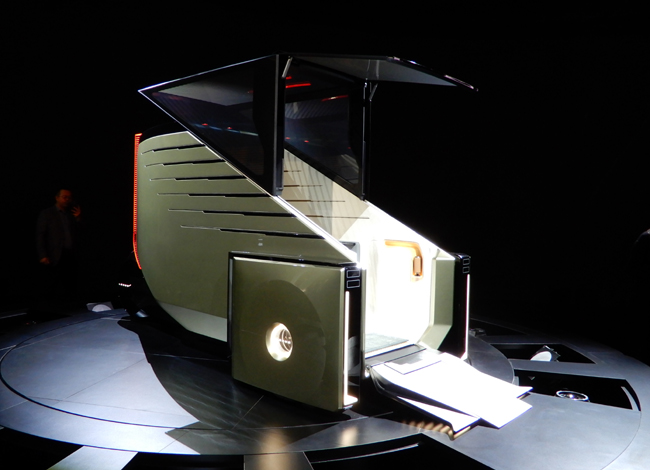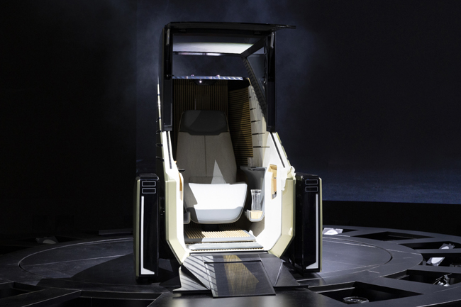 ▲自動運転のマイクロモビリティ「LS MICRO CONCEPT」。ラストワンマイルを走るためのラグジュアリーな完全自動運転の1名乗りマイクロモビリティとして企画。エクステリアはインダストリアルジュエリーという考え方でデザインする
