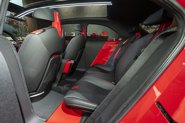 もう1台は、人の感覚をデジタル化した“人体・感性モデル”と共感型AIの融合で人とクルマの絆がさらに深まることを目指した「VISION X COMPACT(ビジョン クロスコンパクト)」。エクステリアはマツダ2の近未来の姿を思わせるアクティブかつスタイリッシュな5ドアハッチバックで構成し、ボディサイズは全長3825×全幅1795×全高1470mm/ホイールベース2515mmに設定。インテリアはミニマリズムを追求するとともに、フラットボトムの3本スポークステアリングホイールや円形の液晶メーター、バケットタイプのシートなどを配して、スポーティなコクピットに仕立てる。インフォテインメントシステムに乗員の使い慣れたスマートフォンを使用する点もトピックだ。そして、AIがドライバーの感情や運転状況を読み取って声をかける共感型AIシステムを配備し、心が通った人とクルマの関係を生成した“スマートモビリティ”の未来像を実現する。パワートレインに関しては、ハイブリッドやEVなど様々な動力源を想定しているという。