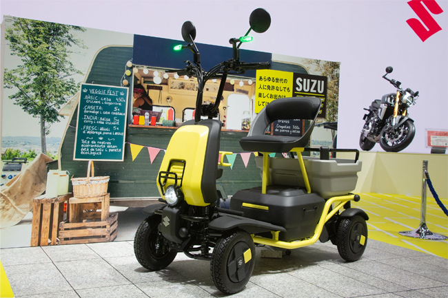 次に、前回のショーで参考出品した「SUZU-RIDE」から進化した電動パーソナルモビリティの「SUZU-RIDE 2」。SUZU-RIDE 2は日常、商用、レジャーまで、いつでも楽しく軽快な気分になるスタイリングや、使い勝手の良いラゲッジスペース、簡単で扱いやすい操作性などを実現。ユーザーのもっと気軽に移動を楽しみたいという願いを叶える電動モビリティに仕立てている。