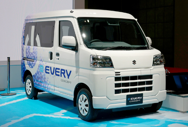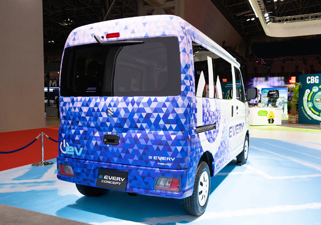 スズキ、ダイハツ、トヨタ自動車の3社で共同開発している、BEVシステムを搭載した商用軽バンのEVモデルのスズキ版「e EVERY CONCEPT」も参考出品された。e EVERY CONCEPTは軽バンとしての使い勝手の良さはそのままに、EVならではの静かで力強い走りを実現するだけではなく、非常時にはクルマの電気を外部に供給するなど、地域社会へ貢献できるモデルとして開発。ボディサイズは全長3395×全幅1475×全高1890mmに設定し、一充電走行距離は200kmを想定している。ショーの展示車は商用車としてのかっちり感と、未来に進むデジタル感をカラーリングで表現していた。