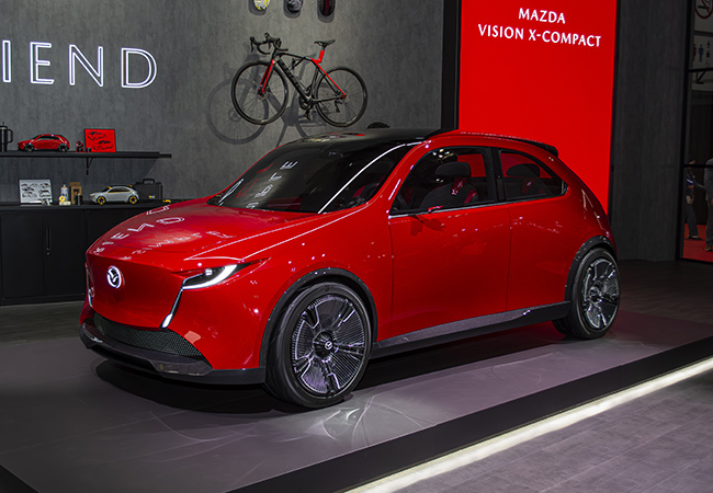 ビジョンXコンパクトは、クルマが親友のような存在になるスタイリッシュHB。次世代のマツダ2(旧デミオ)を思わせるキュートで愛らしいスタイリングもさることながら、ハイライトは、「人とクルマの関係の深化」、すなわち心が通い合う点だ。人間の感覚をデジタル化する「人体・感性モデル」と共感型AIを融合することで、人とクルマのコミュニケーションを実現している。デザインを手がけた高橋快勢氏は「AIの活用でクルマが友人のような存在になり、会話を楽しんだりできる。予定のない休日には、気分に合った場所へと連れ出してくれて世界が広がっていく。そんなクルマとの心地よい距離感、楽しく運転に没頭でき、クルマとの絆を強く感じられるデザインを目指しました。出会った瞬間からクルマを近く感じ、心が通い合う、そんな体験を提供したい」と説明する。ボディサイズは3825×1795×1470mm。パワートレーンなどの詳細は未公表だが、マツダらしく走りにこだわっているのは間違いない。登場が待ち遠しい!