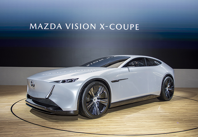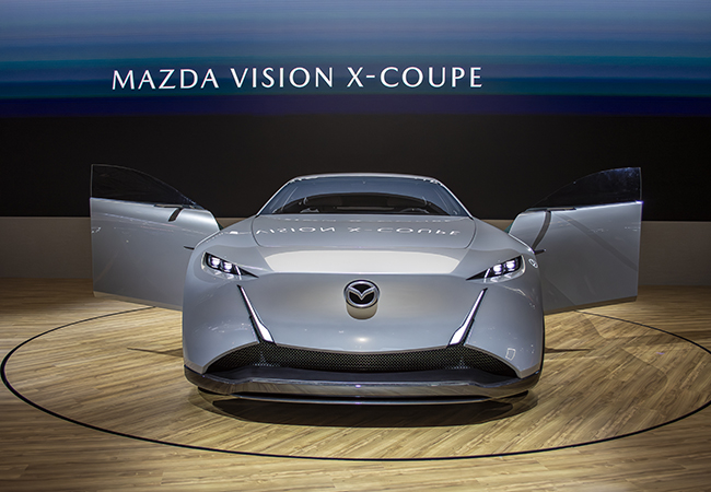 ビジョンXクーペは、今後の「魂動デザイン」の方向性を表現したデザインスタディであるとともに、マツダが今後とも地球環境に寄り添いながら、「走る歓び」を追求することを宣言する1台だ。