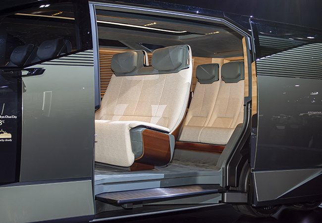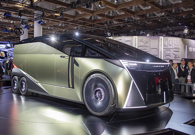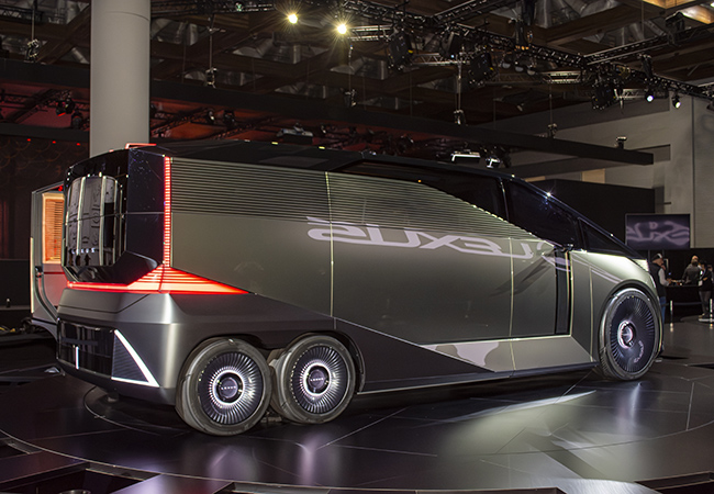 LSコンセプトは、フラッグシップの再定義。トヨタ自動車チーフブランディングオフィサーのサイモン・ハンフリーズ氏は「レクサスの思いはディスカバー、誰の真似もせず、進化することが哲学。それはフラッグシップのLSから始まります」と説明する。従来のサルーンから、圧倒的な存在感のBOXフォルムに変身し、しかも6輪車。後輪を小径4輪とする工夫で抜群に広いキャビンスペースを実現した。LSは、従来「ラグジュアリーサルーン」の頭文字だったが、コンセプトカーは「ラグジュアリースペース」を意味する。室内は2/3列目にプレミアムシートを配置した最上のもてなし空間。「乗る時も降りる時もエレガントに」というコンセプトのもと、大開口スライドドアとの相乗効果で従来にない乗降性を実現した。ルーバーを配したサイドウィンドウによりプライバシー性と独自のエレガンスを実現した点にも要注目だ。メカニズムの詳細は未公表。市販されると世界の高級車シーンに衝撃を与えることは間違いない。