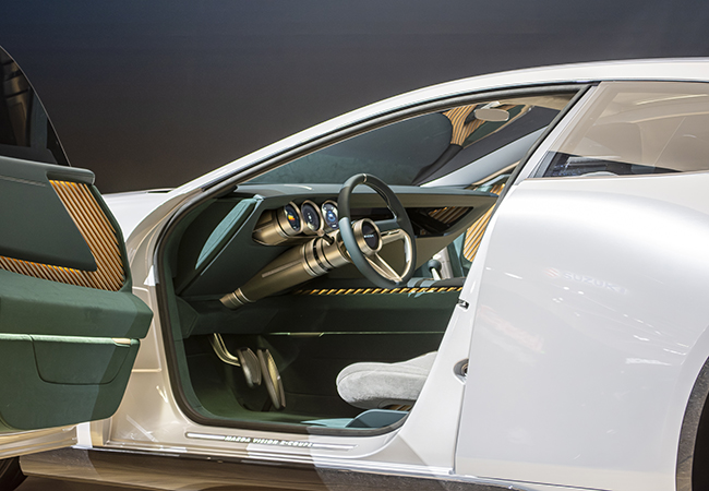 注目は、圧倒的に美しいフォルムとそのメカニズムだ。伸びやかなノーズの下に収まるのは、2ローター・ロータリーターボとモーターを組み合わせたPHEVシステム。エンジンと電動化のベストバランスを追求し、システム出力は510ps、モーターのみで160km、ロータリーとの併用で最大800kmの航続距離を誇る。もちろんパフォーマンスはリアルスポーツレベル。ハンドリングと快適性も十分に吟味されている。