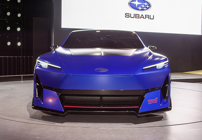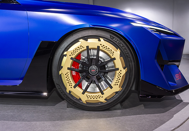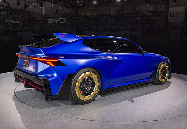 パフォーマンス-E STIは、BEVのスポーツ提案。新設計の電動車専用プラットフォームと、三元系(NMC)のコンパクトな円筒バッテリーを組み合わせ、走りの資質を追求。ボディへの入力を最適にいなす車体剛性の考え方「ダイナミック・スティフネス・コンセプト」を導入した。サスペンションも全面的に新しい。スタイリングは、かつてのWRCマシンを思わせるアグレッシブな印象。速そうだ。