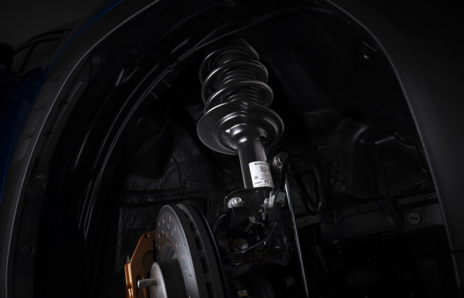▲STI Sport♯ロゴ付フレキシブルドロータワーバーを組み込んでハンドリング性能を高める。搭載エンジンはFA24型2387cc水平対向4気筒DOHC16V・デュアルAVCS直噴ターボ“DIT”ユニット(275ps/35.7kg・m)