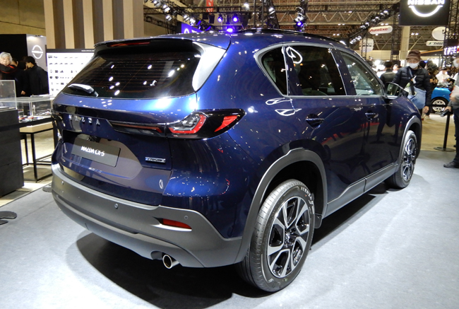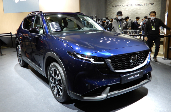 マツダは2026年1月9日~11日に幕張メッセで開催された東京オートサロン2026において、新塗装色のネイビーブルーマイカを纏った新型CX-5のミドルグレードと、エアロパーツを装備した新型CX-5の旗艦グレードを出展した。