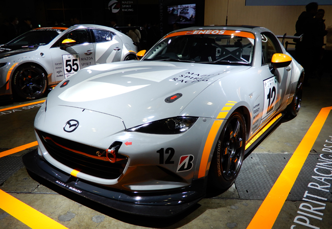 ブースではほかにも、マツダ独自のCO2回収装置「Mazda Mobile Carbon Capture」を組み込んだうえで、使用燃料にリニューアブルディーゼル燃料(HVO100%)を採用し、合わせて再生カーボンパーツなどを装備した「MAZDA SPIRIT RACING 3 Future concept(ST-Qクラス・55号車)」と、使用燃料に低炭素ガソリン(E20)を採用するとともに、カーボンニュートラルタイヤや再生カーボンパーツなどを装備した「MAZDA SPIRIT RACING RS Future concept(ST-Qクラス・12号車)」を出展。また、前述の2モデルに加えて「倶楽部MAZDA SPIRIT RACING ROADSTER(ST-5Rクラス・120号車)という計3台が、2025年に続いて2026年のスーパー耐久シリーズに参戦することを公表した。